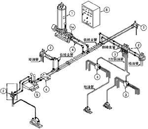 一、系統(tǒng)介紹 電控柜④內(nèi)的指令時(shí)間繼電器使系統(tǒng)按照設(shè)定的給油間隔時(shí)間自動(dòng)動(dòng)作,指令時(shí)間用”給油時(shí)間延長“表示給油工作的異常,另設(shè)有”貯油器空“、”過負(fù)荷運(yùn)轉(zhuǎn)“等警報(bào)信號(hào)。指令時(shí)間繼電器按系統(tǒng)一次給油工作實(shí)際所需時(shí)間加2~5分鐘來調(diào)整。 液壓換向閥 1a 具有切換兩條供油主管和控制供油主管末端的壓力的功能,當(dāng)供油的主管的末端壓力達(dá)到液壓換向閥的設(shè)定壓力,液壓換向閥換向,并向電控柜發(fā)送信號(hào),潤滑泵①停止,系統(tǒng)再次工作,從另一條主油管供油。 系統(tǒng)設(shè)計(jì)通常按給油時(shí)間5分鐘以內(nèi)(最高8分鐘以內(nèi))設(shè)計(jì),液壓換向閥的標(biāo)準(zhǔn)設(shè)定壓力為5MPa。 二、特 點(diǎn) 供油管末端壓力直接控制換向閥換向,動(dòng)作可靠。 換向閥裝設(shè)于潤滑泵上,電氣配線費(fèi)用低。 在潤滑泵上進(jìn)行壓力調(diào)整,維護(hù)、檢查方便。 適用于潤滑點(diǎn)比較集中的場合。 四、系統(tǒng)裝置簡圖 |