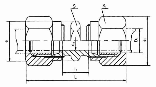 公稱壓力J級,管子外徑D0為14mm的卡套式直通管接頭: