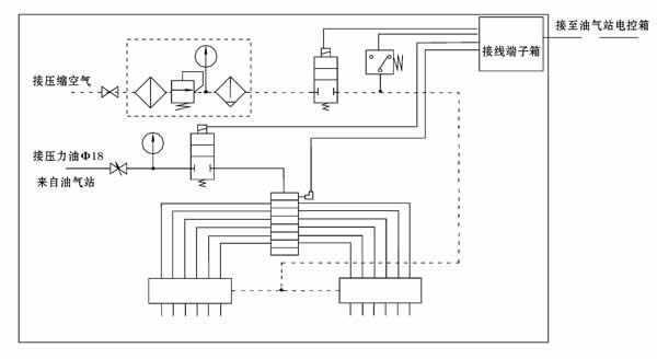 2、油氣衛(wèi)星站的進(jìn)氣接口必須與工廠壓縮空氣(允許使用氮?dú)猓┕夤芫€相連,決不允許使用其它介質(zhì)的氣體,以免發(fā)生安全事故。