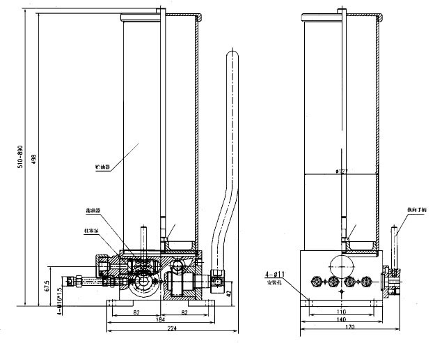 2、SRB-J7-4/4型手動(dòng)潤(rùn)滑泵必須直立安裝,并用四只M10×30螺栓緊固。