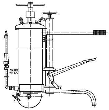 JRB-3型腳踏潤(rùn)滑泵主要由貯油器,柱塞泵、打氣筒操縱裝置四大部分組成。