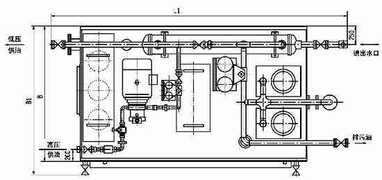 | 本油站為整體式,由油箱、兩臺(tái)低壓油泵、一臺(tái)高壓油泵、二臺(tái)雙筒網(wǎng)片式過(guò)濾器、回油磁網(wǎng)過(guò)濾裝置、列管式油冷卻器、各種控制閥門、管道以及電接點(diǎn)壓力表、鉑熱電阻等組成。 工作原理基本上也和A系列相同;但B系列的低壓油經(jīng)過(guò)過(guò)濾和冷卻后外供時(shí),一部分低壓油通過(guò)旁路再經(jīng)過(guò)一個(gè)雙筒過(guò)濾器后才進(jìn)入高壓泵的吸油口,以提高高壓油的清潔度等級(jí);但應(yīng)注意當(dāng)?shù)蛪汗┯蛯?shí)際壓力較小時(shí)(例如小于0.2MPa時(shí)),由于后一過(guò)濾器同樣也有壓差損失(也隨時(shí)間逐步增大),為保證高壓油泵順利吸入,吸入口應(yīng)始終保證正壓(當(dāng)后過(guò)濾器切換前壓差達(dá)最大時(shí)也必須滿足這一要求);除 流量和A系列有很大不同外,最主要特點(diǎn)(結(jié)構(gòu)特征)為高壓泵吸口前有另一臺(tái)過(guò)濾器。 其他工作原理和操作控制可參見(jiàn)A系列所述。 | |||||||||||||||||||||||||||||||||||||||||||||||||||||||||||||||||||||||||||||||||||||||||||||||||||||||||||||||||||||||||||||||||||||||||||||||||||||||||||||||
