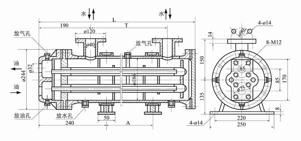 一、使用條件 與GLLQ型列管式冷卻器相似,產(chǎn)品適用于冶金、礦山、輕工、電力、化工等工業(yè)部門(mén)的液壓與潤(rùn)滑裝置,將熱工作油冷卻到要求的溫度;冷卻器的設(shè)計(jì)最高溫度為100℃~120℃,工作壓力≤1.6MPa,傳熱系數(shù)為348~407w/m2.k,(若采用翅片管換熱,則傳熱系數(shù)為523~580W/m2·k,但允許介質(zhì)粘度為10~50cSt)。下面列出的LQ型冷卻器則規(guī)定介質(zhì)粘度為10~326cSt,主要技術(shù)參數(shù)如下表: |